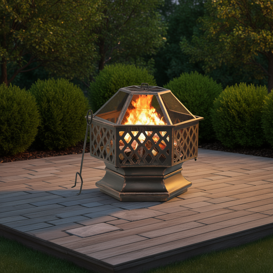 Braciere Rustico in Acciaio 24.4x21.3x22 Pollici con Paletta, per Ritrovi all'Aperto, Autoportante, a Legna