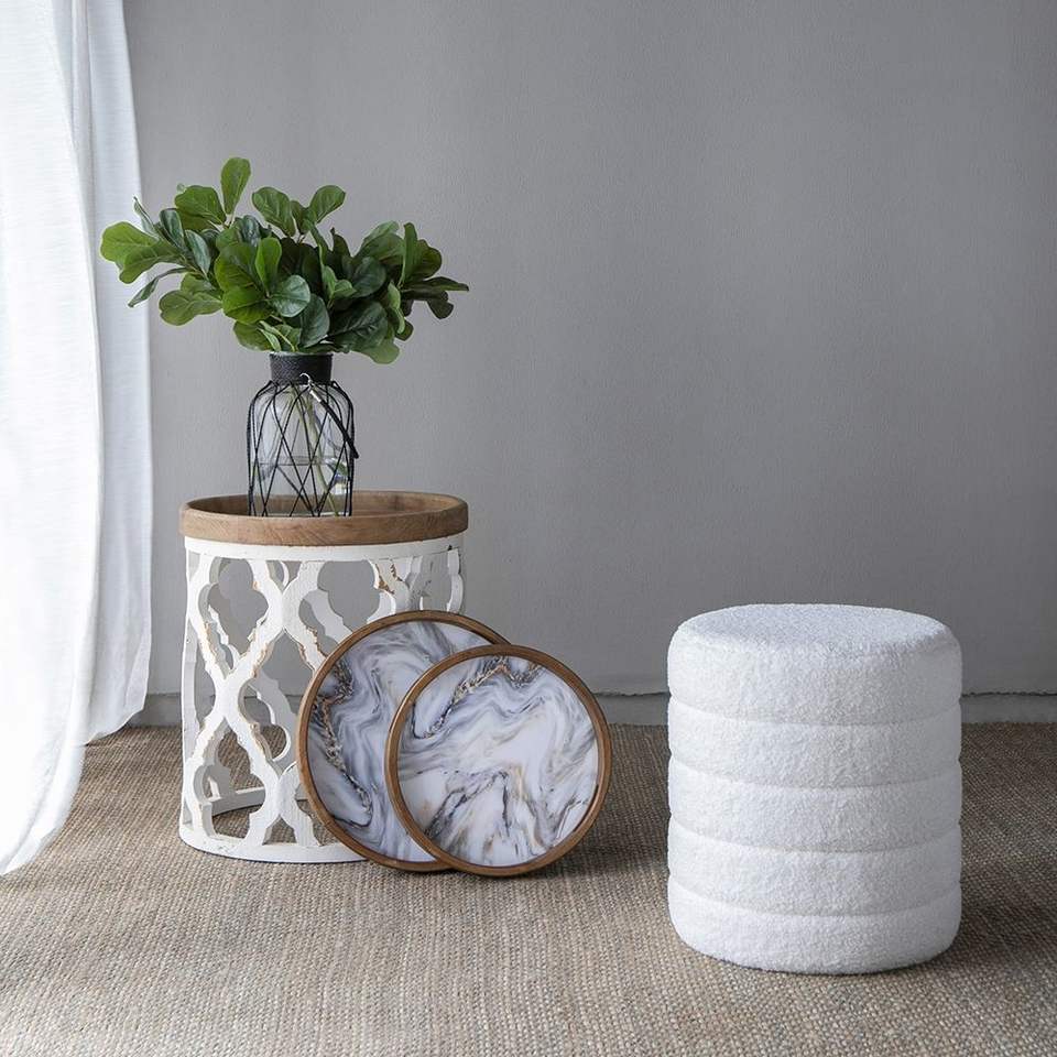 Collezione S/10 di Arredamento in Stile Country Francese per Soggiorno, Include Piante Artificiali, Vasi, Vassoi, Sgabello e Tavolino Laterale