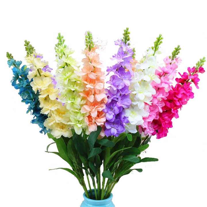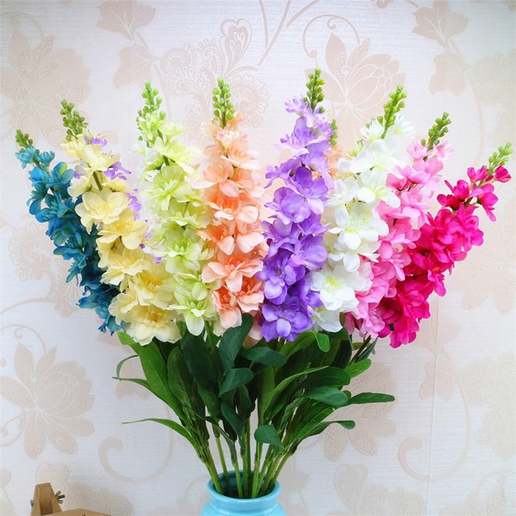 S-1219 Factory Wholesale Artificial Silk Flower Delphinium for Home Decoration Single Violet Flowers