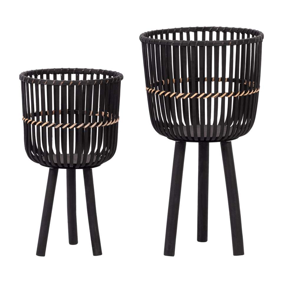 S/2 Bamboo Faced Planters 10/12\" Black Flower Pots & Planters