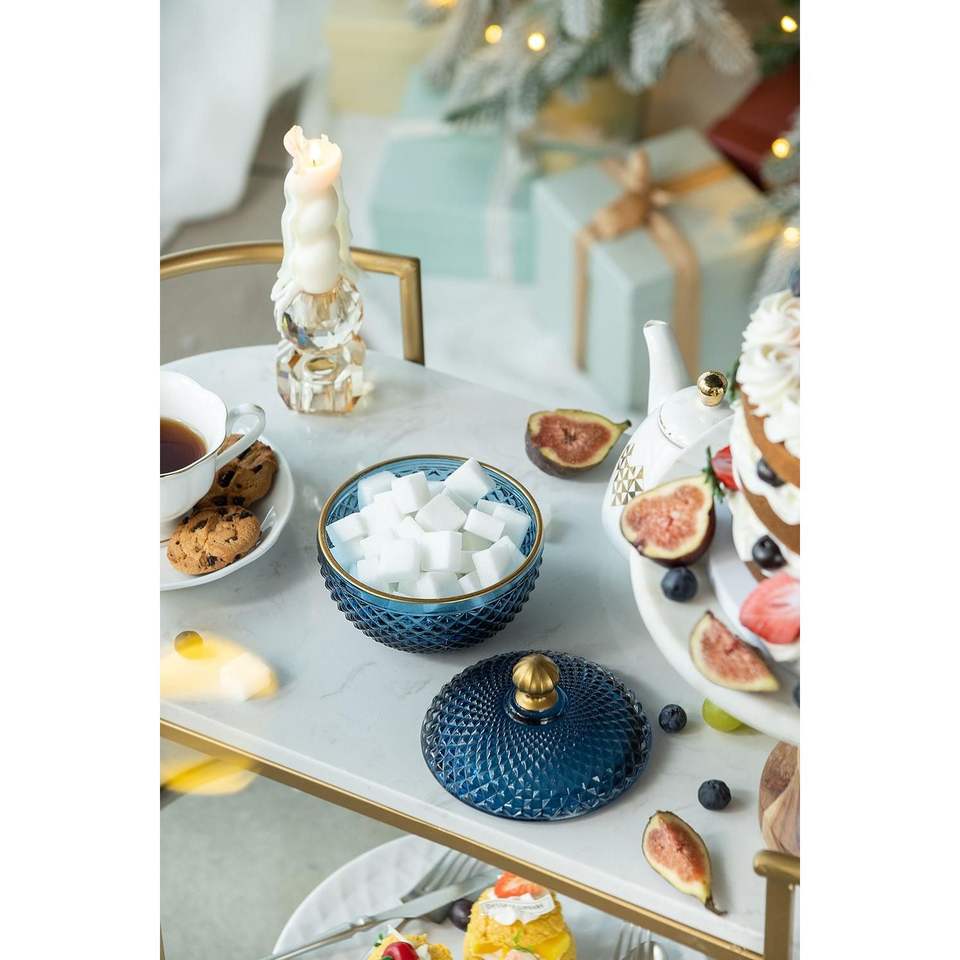Set di 2 Barattoli in Vetro Blu con Coperchio, Eleganti Contenitori per Dolci e Decorazioni Natalizie