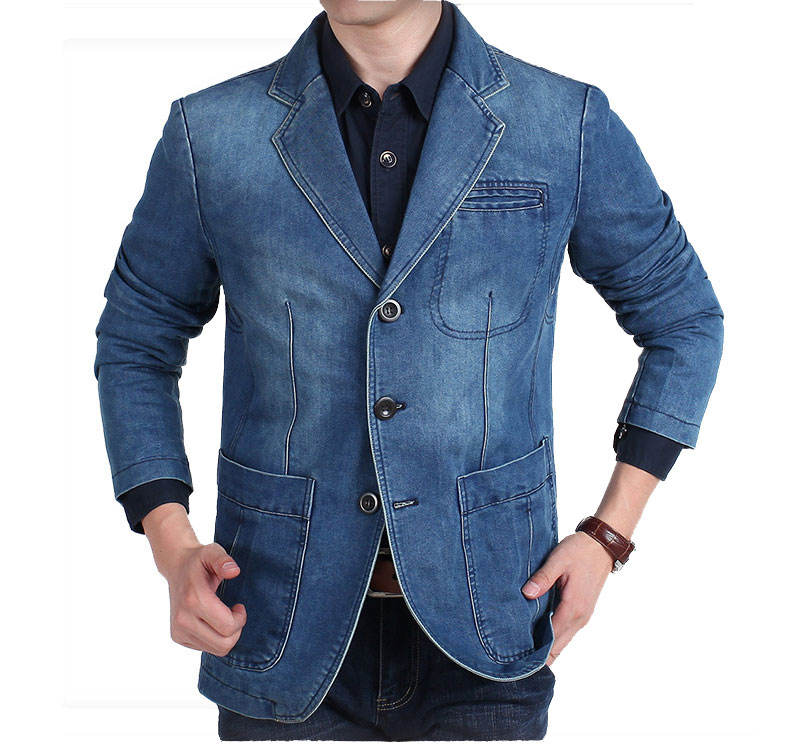 S-4XLNew Men]s Denim Blazer Men Fashion Cotton Vintage Suit Coat Male Blue Denim Jacket Men Slim Fit Jeans Blazers Outwear