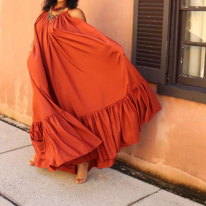 S-5XL 2022 tinta unita senza maniche Halter donna estate spiaggia vestiti a strati Swing allentato Plus Size Maxi vestito