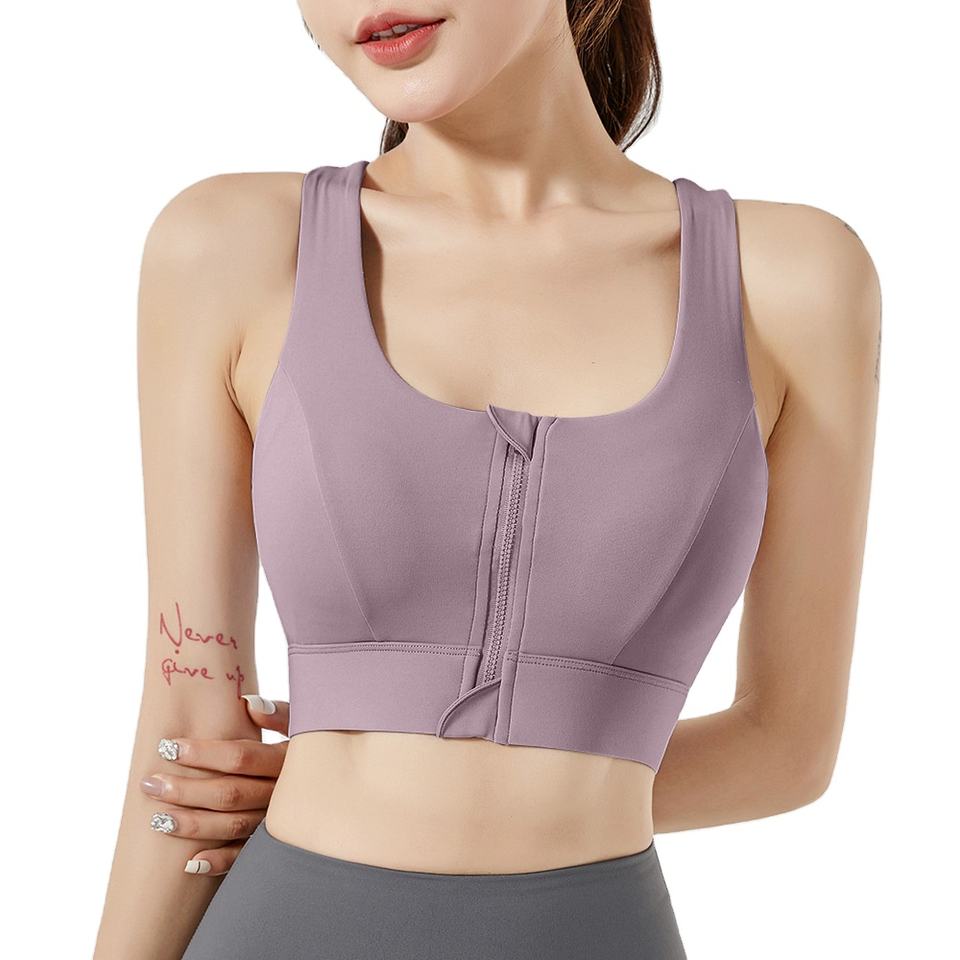S-5XL Custom Womens Fitness Cross Back Padded Sport Bra Seamless Zip Front BH Yoga Sports Bra Top for Gym