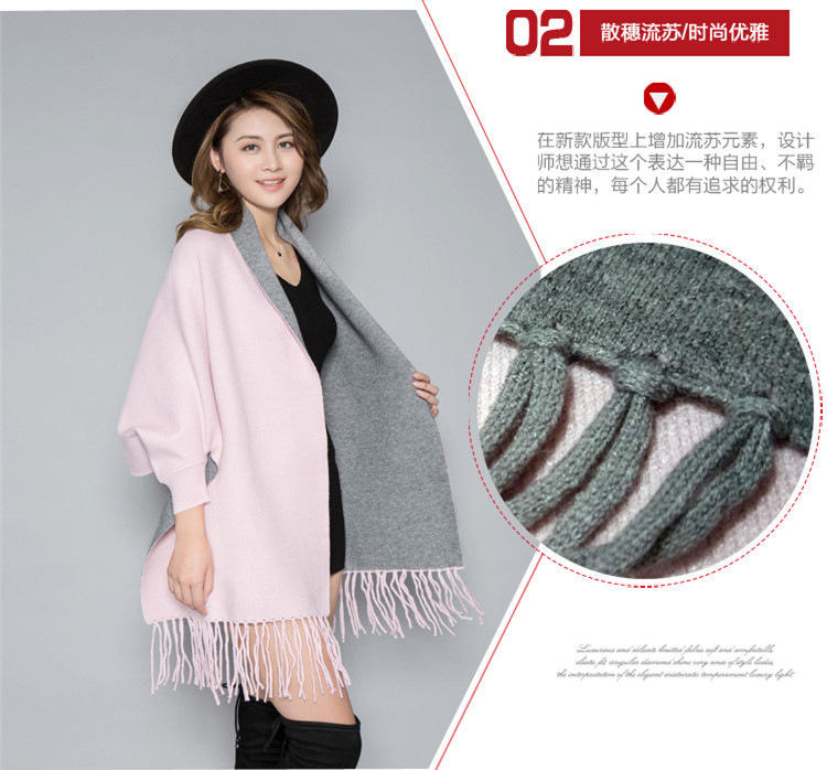 S M L 100% Acrylic Ins Scarf Autumn Winter Tassel Shawl Hollowed Out off Shoulder Long Sleeved Shawl Cape No Belt