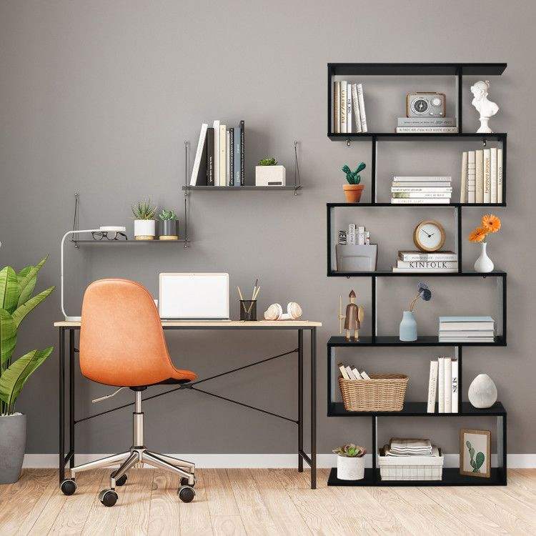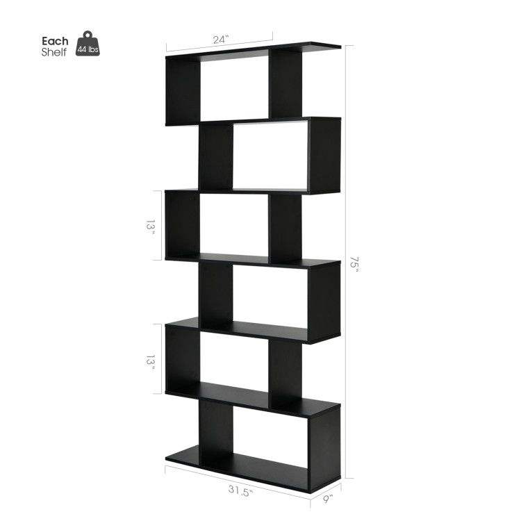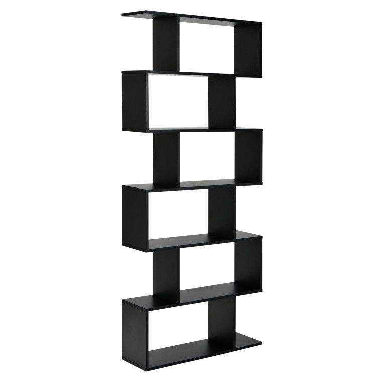 Libreria a 6 livelli a forma di S con scaffale a Z per decorazioni e ripostiglio