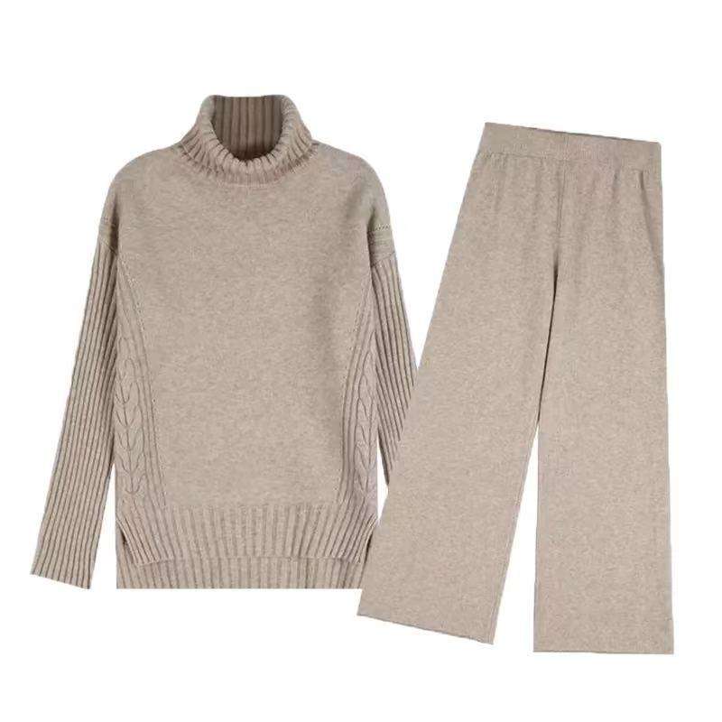 Completi Due Pezzi con Maglione a Collo Alto e Pantaloni a Gamba Larga con Spacco Taglia Unica S-XL Tuta da Donna in Maglia