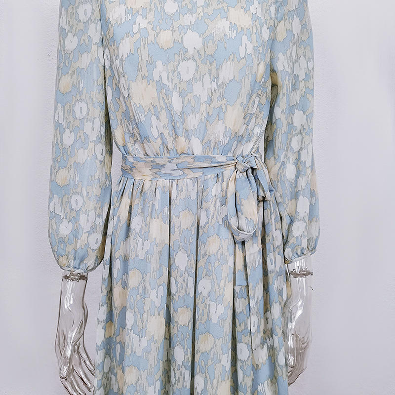 S-XXL Spring and Summer Chiffon Dress Long-sleeved Coffee Black Polka Dot Lace Printed Dress Skirt Women Clothing