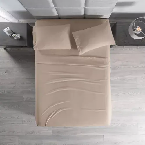Viasoft King Size Almond Flat Sheet Set, 500TC Polyester Bedding, Solid Color, All-Season, Washable, 600gsm, Classic Style for A