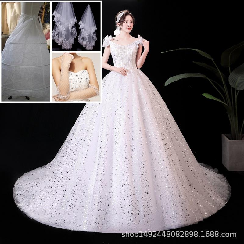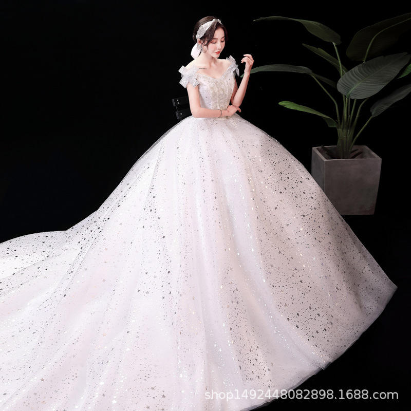 S0293X abito da sposa con spalle scoperte da sposa con gonna gonfia lungo fino al pavimento semplice piccola principessa sottile