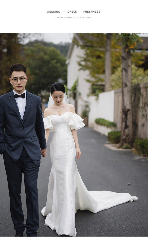 S0558G New Bride Gauze Shooting Photography of Dream Super fairy Satin Facial Fishtail Gown Dress Elegant Wedding Dress