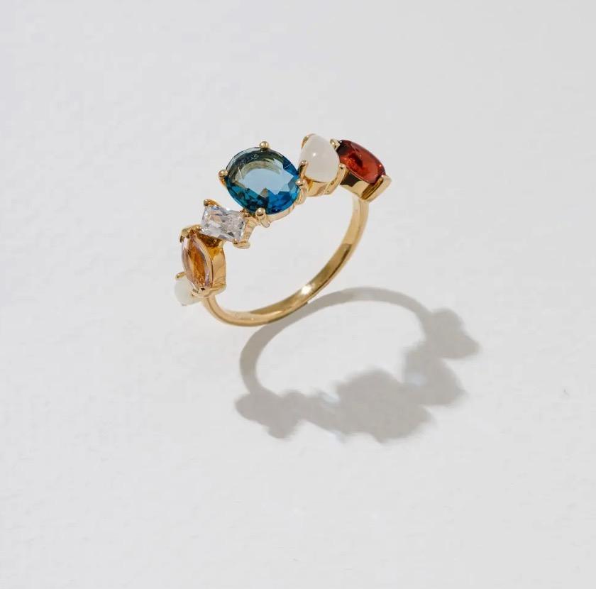 Anello Personalizzabile S925 Placcato Oro 14K con Topazio Blu di Londra Naturale, Granato, Ametista, Pietra di Luna Bianca, Madreperla e Zirconia Cubica