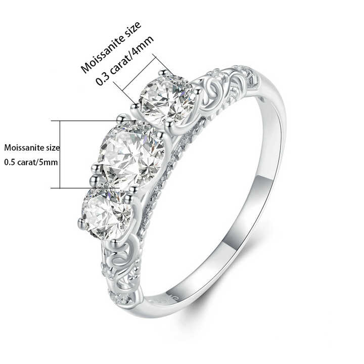 S925 Silver 1.1ct Moissanite Ring French Classical Pattern Luxury Minimalist Style Wedding Gift for Wife Mother's Day