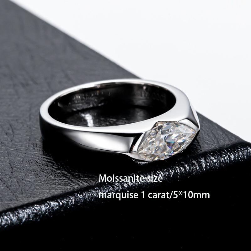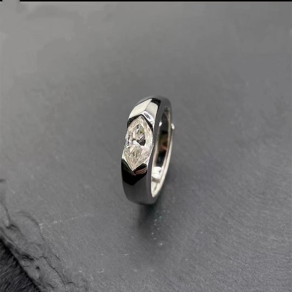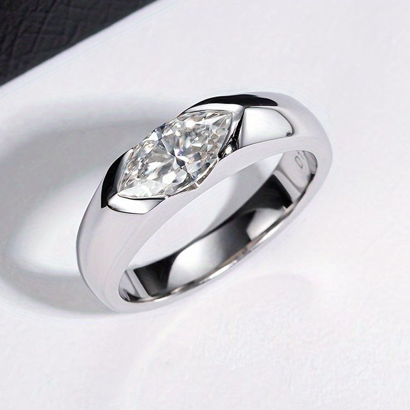 S925 Silver 1ct Marquise-Shaped Moissanite Ring Simple Cool Luxury High-End for Couples