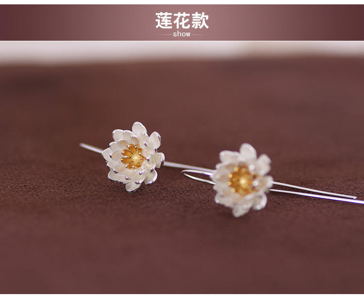 S925 Sterling Silver Earrings Eardrop Thailand Craft Fashion Temperament Lotus Lotus Sterling Silver Earrings