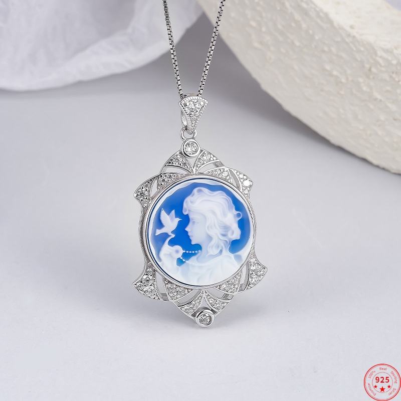 S925 argento Sterling Micro zircone agata blu fanciulla colomba della pace ciondolo di fascino per le donne gioielli di moda all'ingrosso