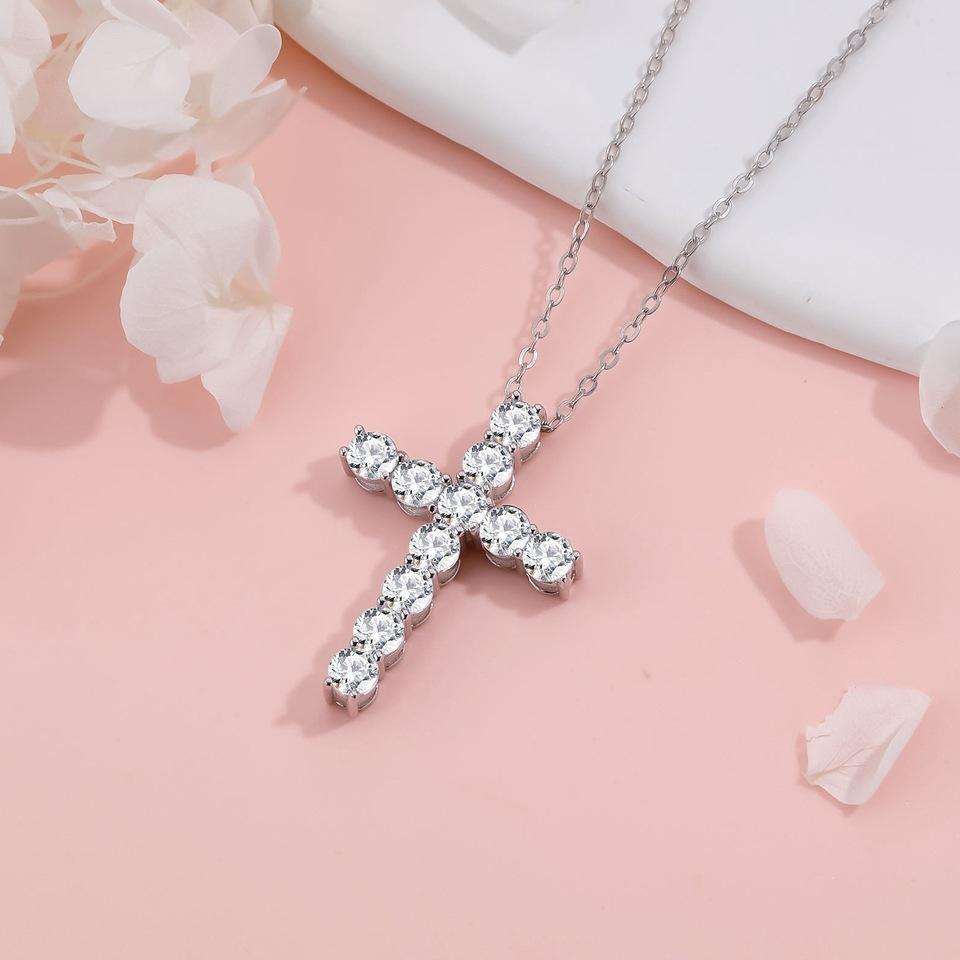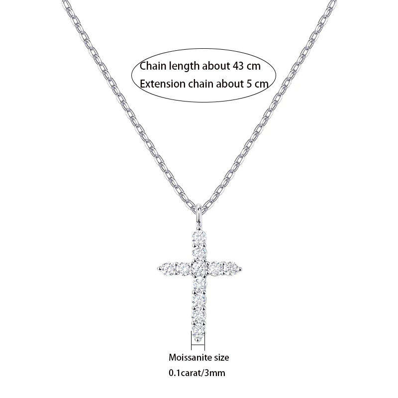 S925 Sterling Silver Moissanite Cross-Style Necklace Classic Simple Design for Daily Wear Travel for Photography Gift Giving