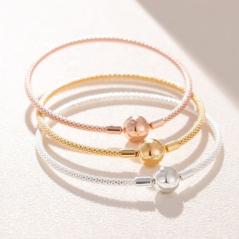 Bracciali con Charm in Argento Sterling S925 Placcato Oro Rosa, Compatibili con Charm Pan, Gioielli Fai-da-Te per Donne