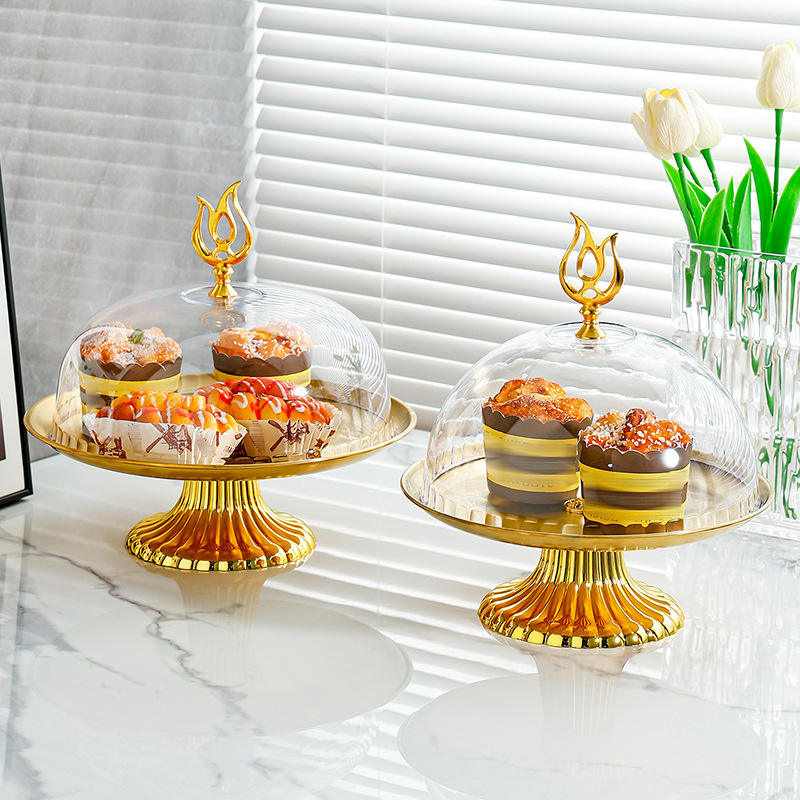 SA04 oro in acciaio inox vaschetta per dolci per uso domestico con copertura in plastica trasparente per dolci pane piatto