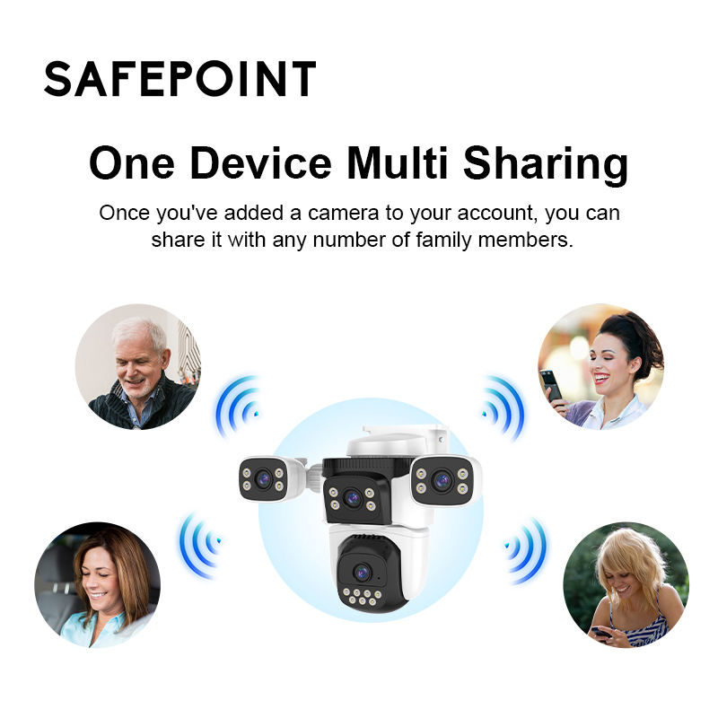 Telecamera di Sicurezza SAFEPOINT con Quattro Obiettivi, Doppio Braccio PTZ, WiFi, Impermeabile per Esterni, 1080P, Tracciamento AI, Visione Notturna a Colori, Allarme
