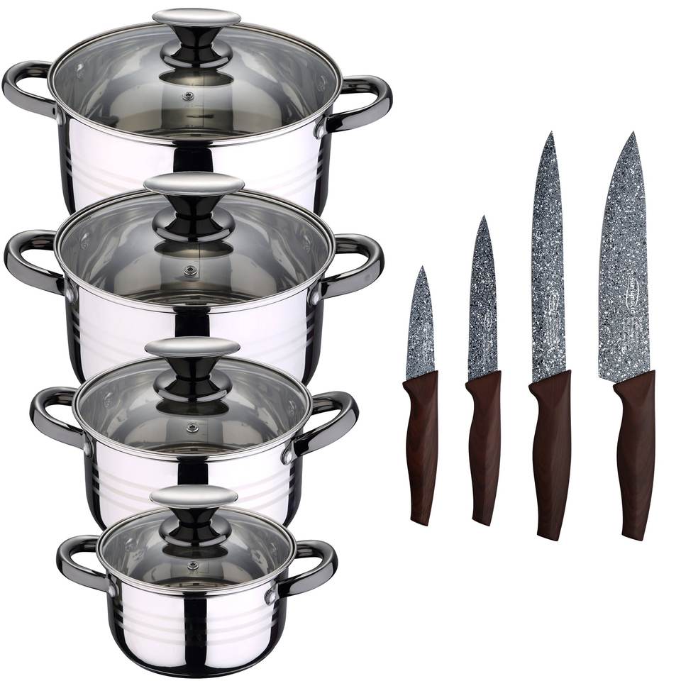 SAN IGNACIO Hita 8-piece stainless steel cookware set suitable for induction hobs, with a set of 4 stainless steel kitchen
