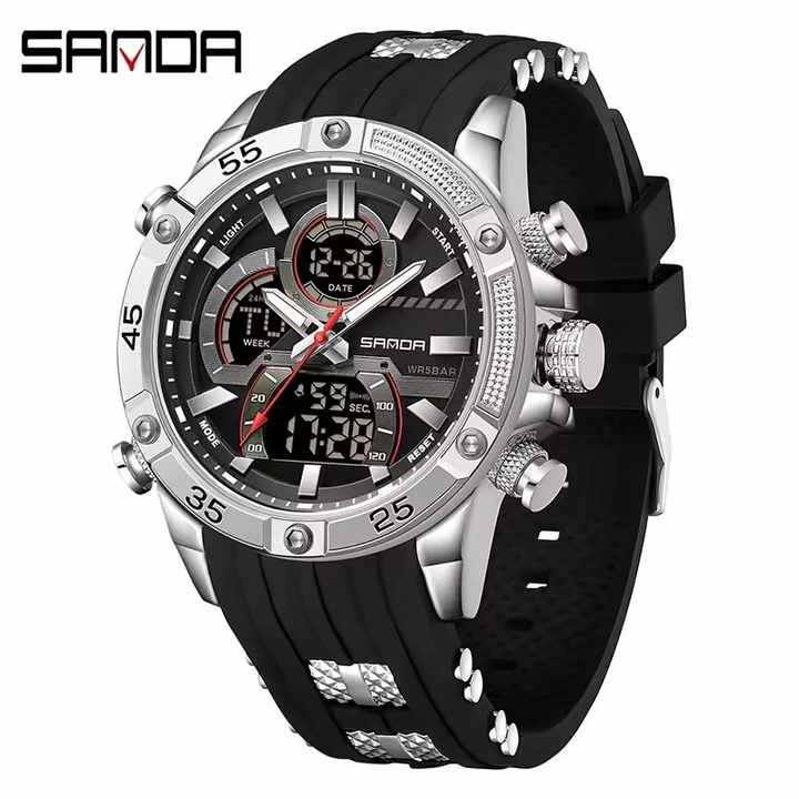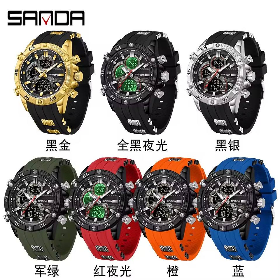 SANDA 6162 Men's Watch Stylish Silicone Band High Quality Man Quartz Watches Hot Selling on Sale Personalized 3ATM Waterproof