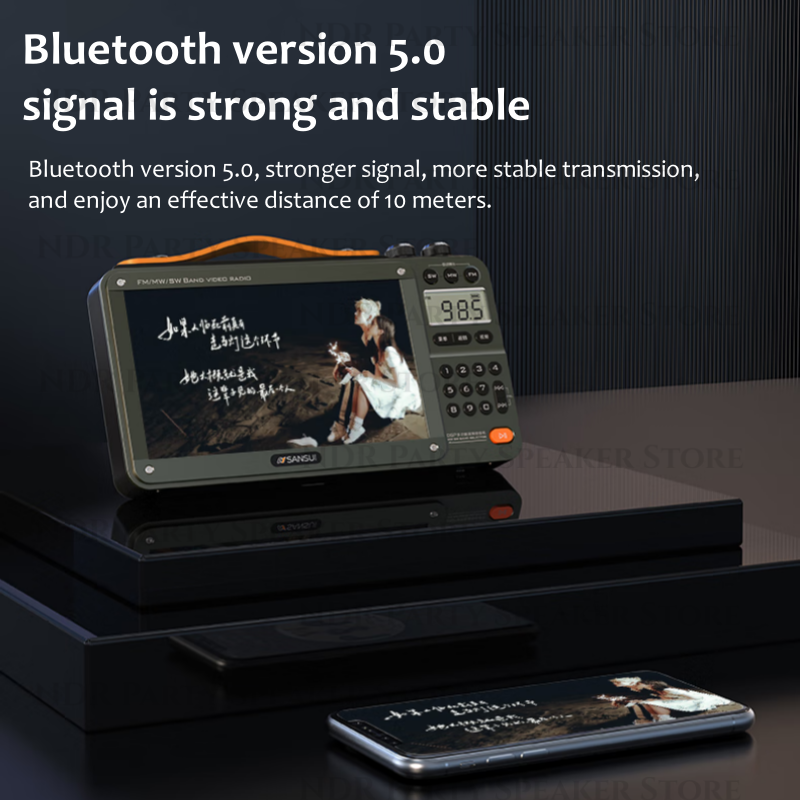 SANSUI F50 Radio FM Portatile con Display Video, Altoparlanti Wireless, Doppio Slot per Scheda TF, Lettore Musicale MP4, E-Book