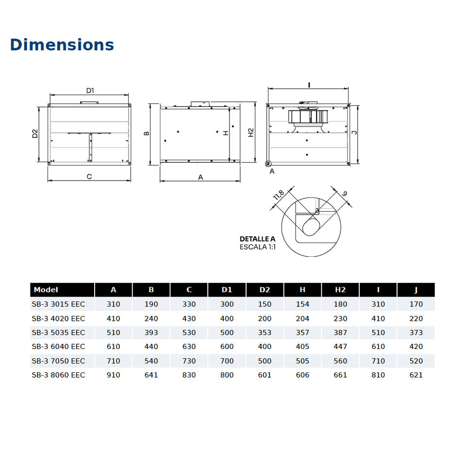 SB-3 4020 EEC low-profile inline cabinet fan with external rotor EC motor, IP44, Class B insulation; range airflow from 440 to