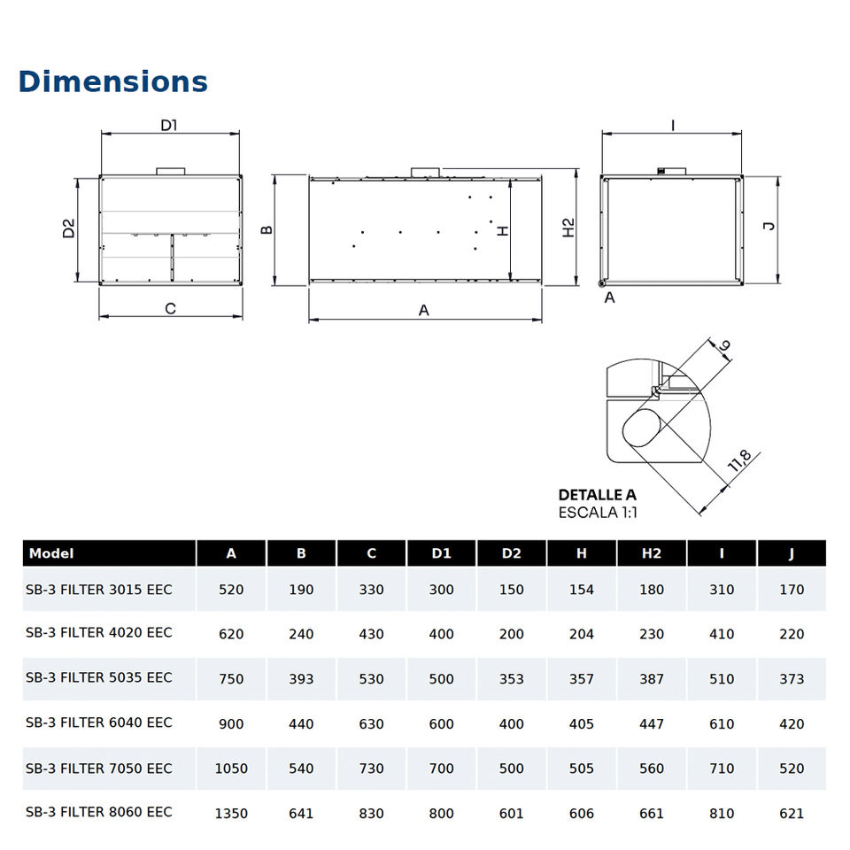 SB-3 filtro F7 3015 EEC ventilatore in linea con motore EC e filtro integrato, alloggiamento in acciaio zincato, classe IP44 B