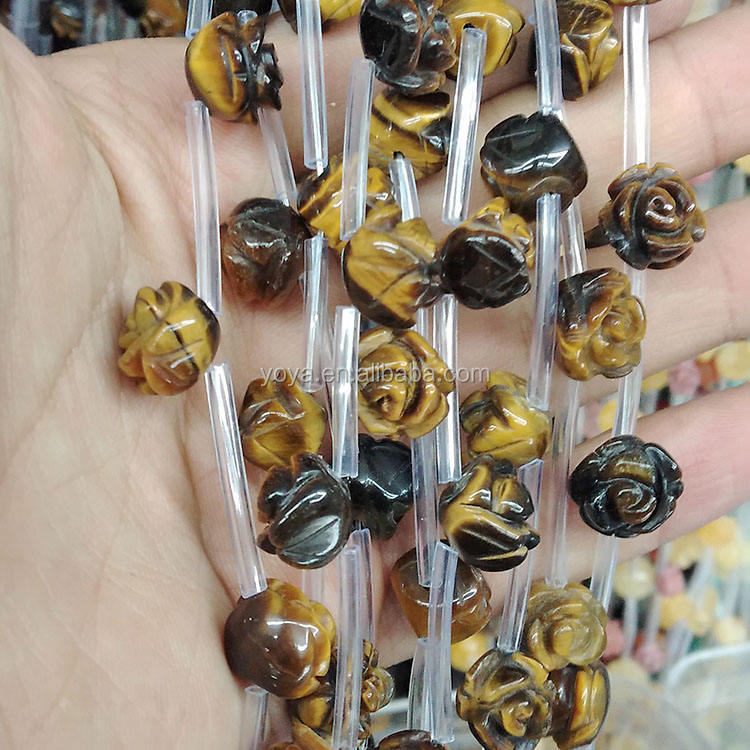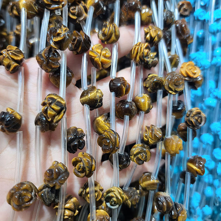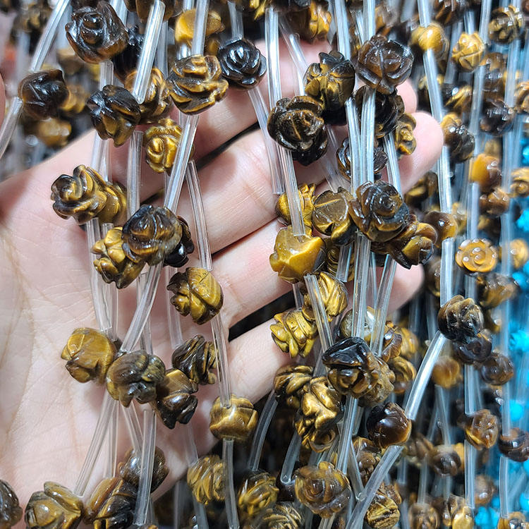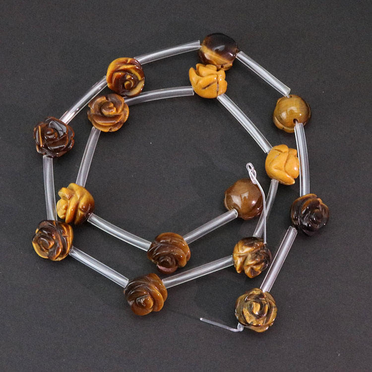 Name:Tiger's Eye Stone Carved Rose Flower Focal Beads