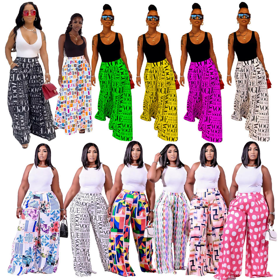 SD3109 Pretty Letter Print Palazzo Pants High Street High Waist Pocket Loose Long Wide Leg Pants Women's Pants & Trousers