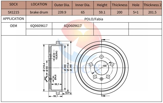 SDCX Brake DISC SX1215 6Q0609617 6QD609617 for POLO Fabia BRAKE DRUM