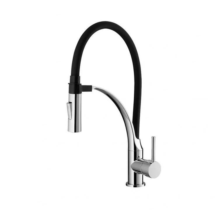 Miscelatore per Lavello da Incasso SEATTLE LINE Nero e Cromato con Maniglia Singola, Valvola in Ottone e Cartuccia in Ceramica, con Doccetta Estraibile