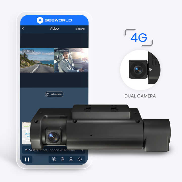 SEEWORLD Videocamera DVR HD a Doppia Faccia per Auto con Tracciamento GPS e Visualizzazione Remota in Tempo Reale