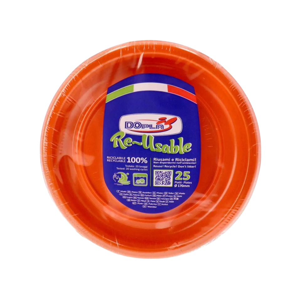 SET DI 25 PIATTI IN PLASTICA PER FRUTTA, DIAMETRALMENTE [VALORE DEL DIAMETRO] MM 17CM, ARANCIONE