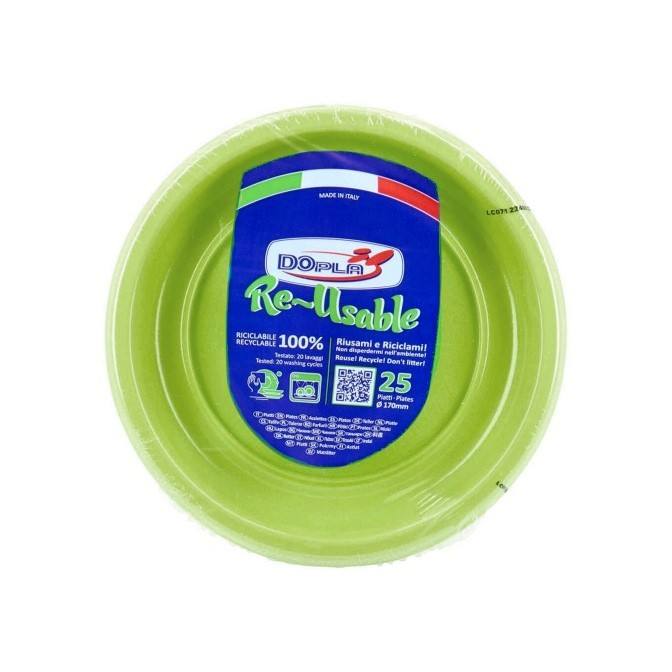SET OF 25 PLASTIC FRUIT PLATES, DIAM. 17CM, ACID GREEN
