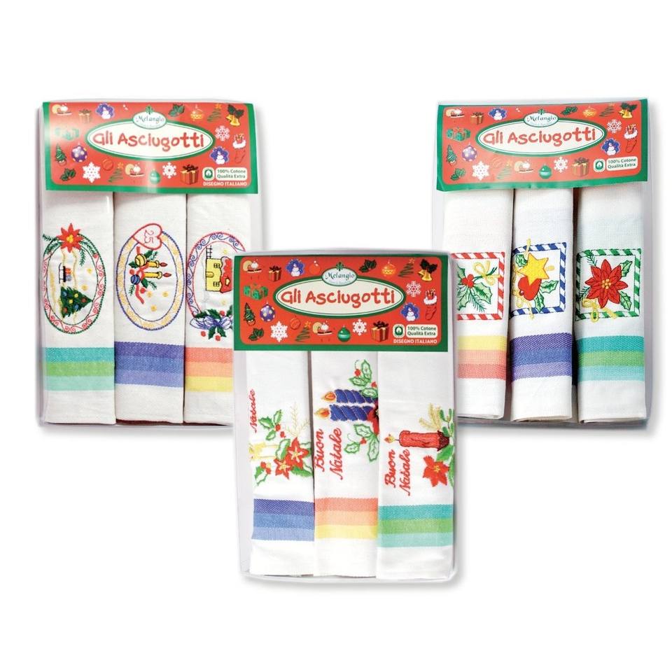 SET DI 3 STROFINIETTI IN COTONE A SPINA DI PESCE ASSORTITI PER NATALE