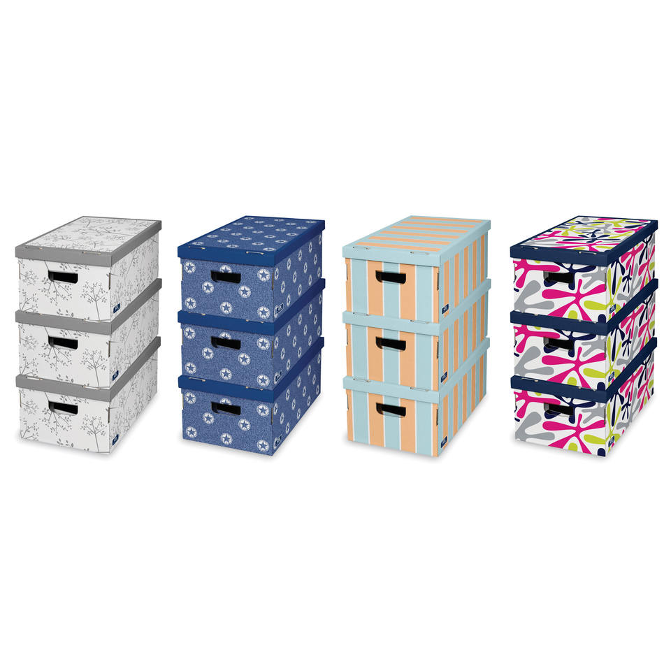 SET DI 3 SCATOLE IN CARTONE PIEGHEVOLE AUTOASSEMBLANTI ASSORTITE 20X29X52CM