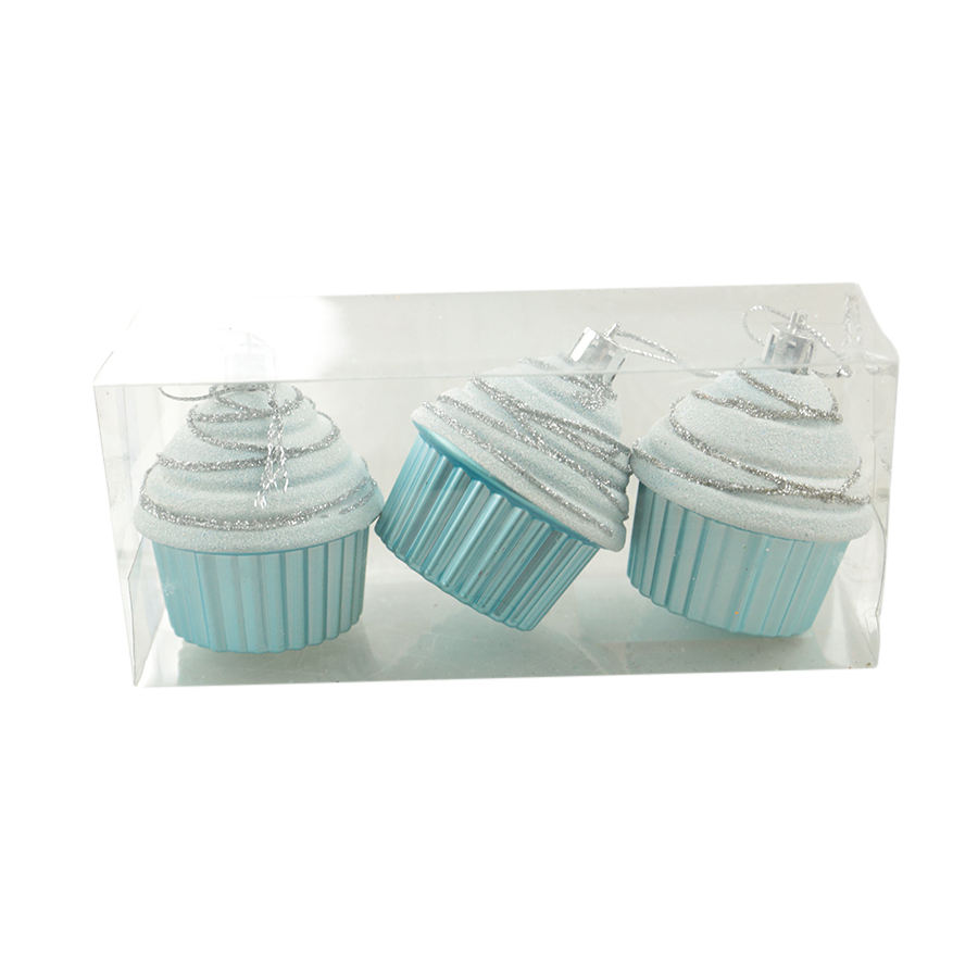 SET OF 3 BLUE CUPCAKE-SHAPED PENDANTS WITH GLITTER 5.5X7 H. 16.5CM