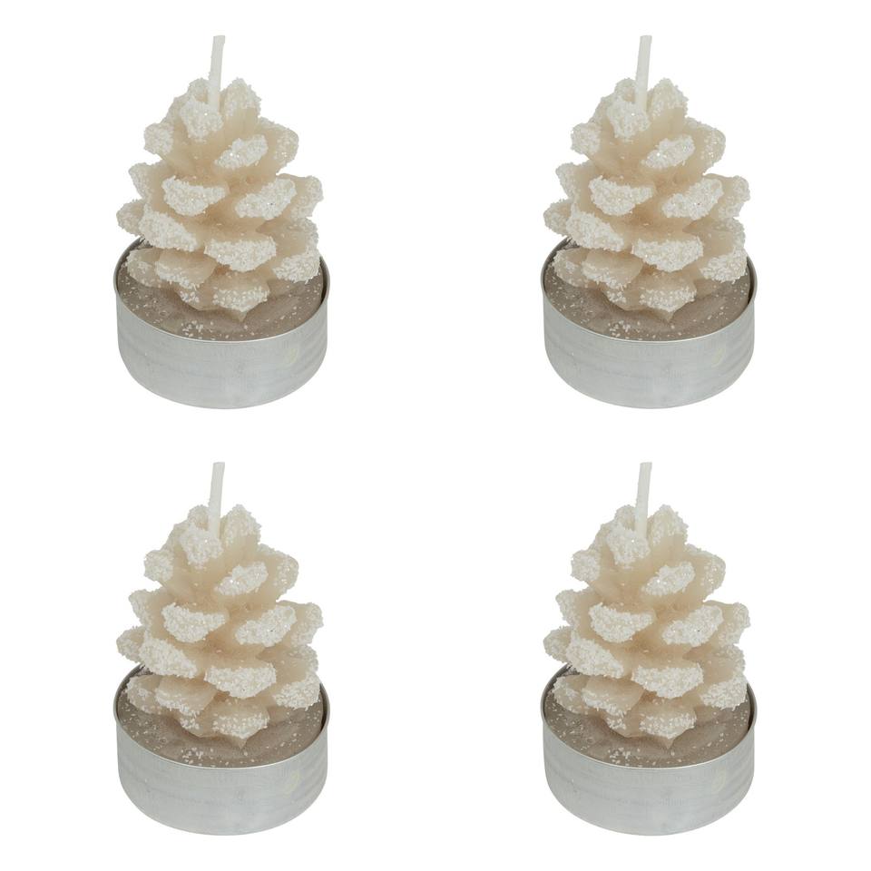 SET DI 4 CANDELLE TEALIGHT A FORMA DI PINEA CON EFFETTO NEVE 3,8X5,2CM