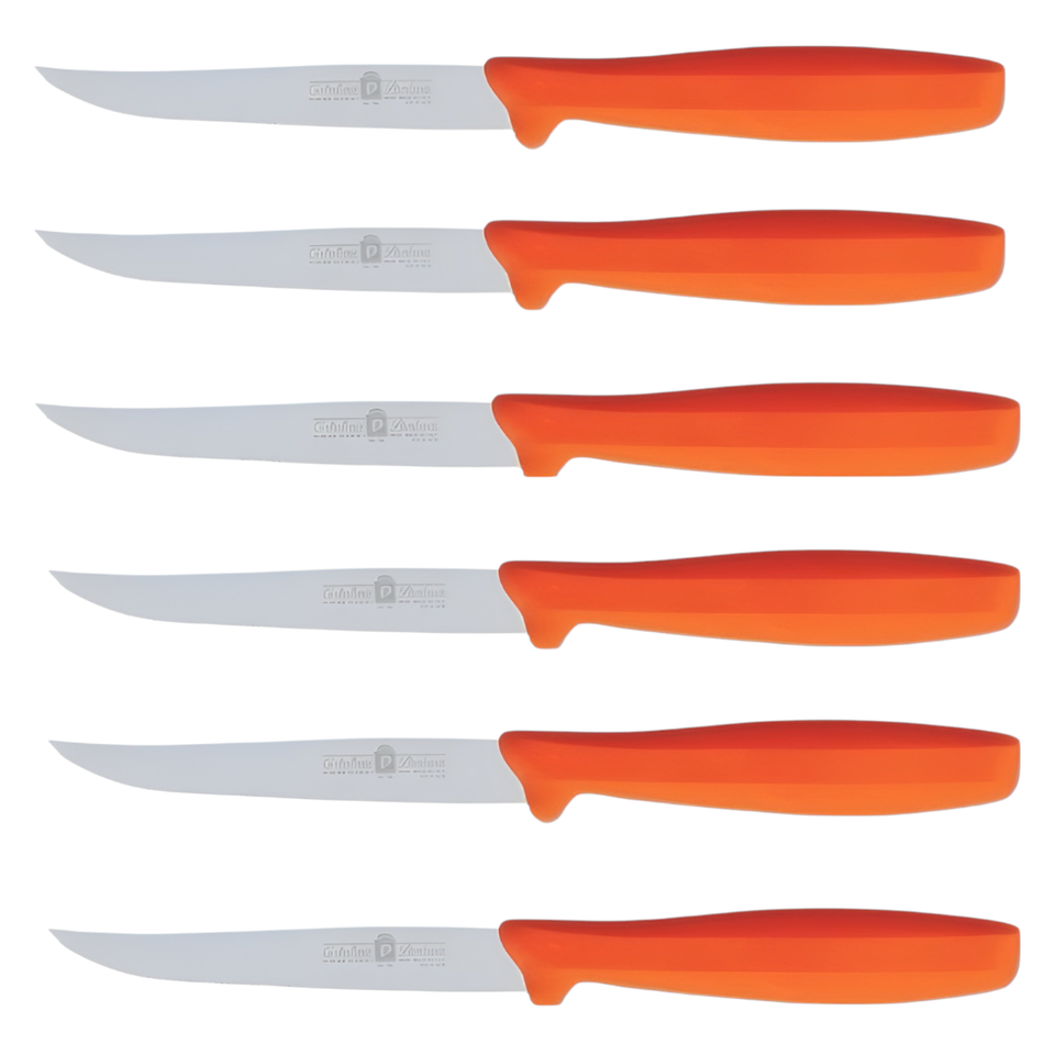 SET OF 6 ORANGE STEAK KNIVES, THE ORIGINAL BEST LINE, 11CM