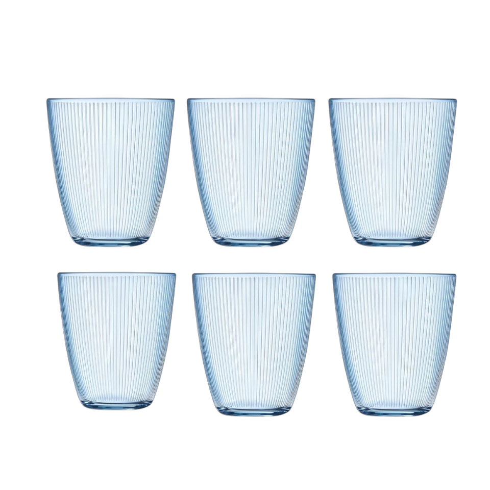 Set di 6 bicchieri d'acqua a righe in vetro blu da 31cl