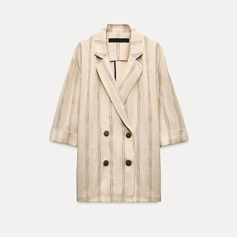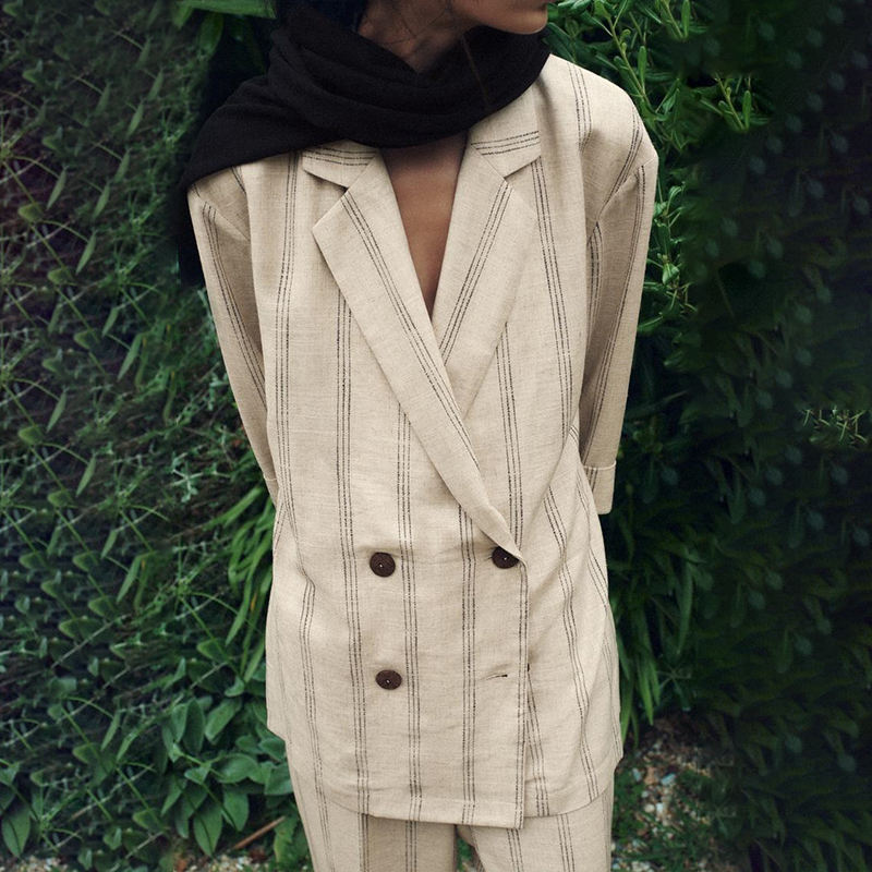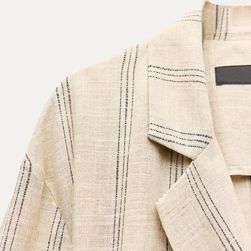Blazer donna SF AL 24 t133 a manica lunga con colletto bavero a righe misto da donna giacca formale da ufficio in lino doppiopetto