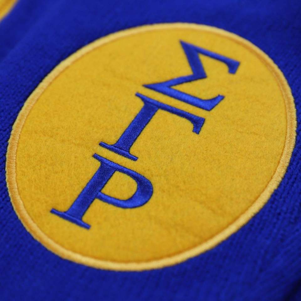 SGRho Sweater Cardigan Royal Blue Gold Sigma Gamma Rho HBCU Greek Sorority Apparel Chenille Greek Letters Custom Knit Cardigan