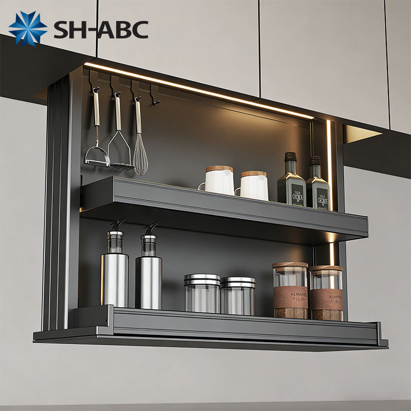 Organizzatore per Armadietti Superiori SH-ABC, Sistema di Stoccaggio per Cucina, Armadietti Ribaltabili Anti-Pizzicamento