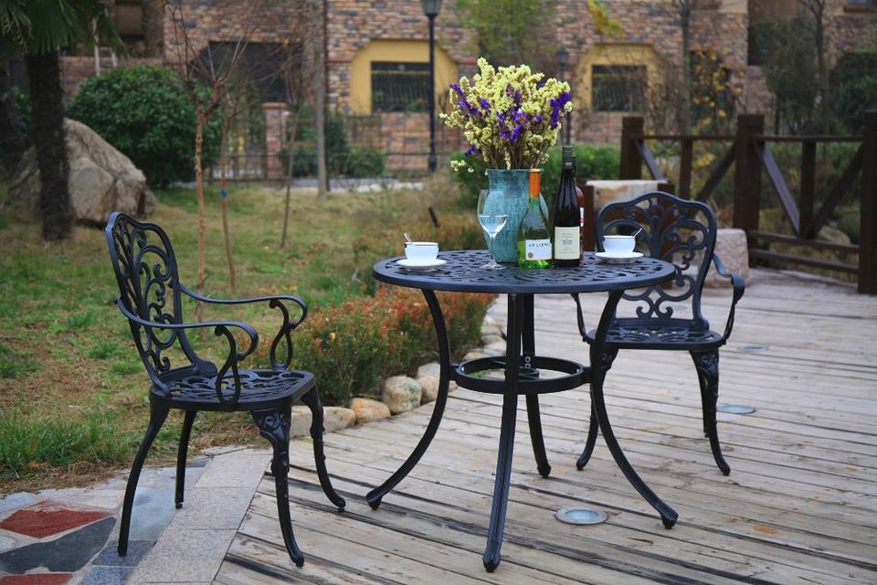 Tavolo Rotondo da Pranzo in Alluminio Pressofuso con 2 Sedie per Esterni, Stile Farfalla, Vendita Calda