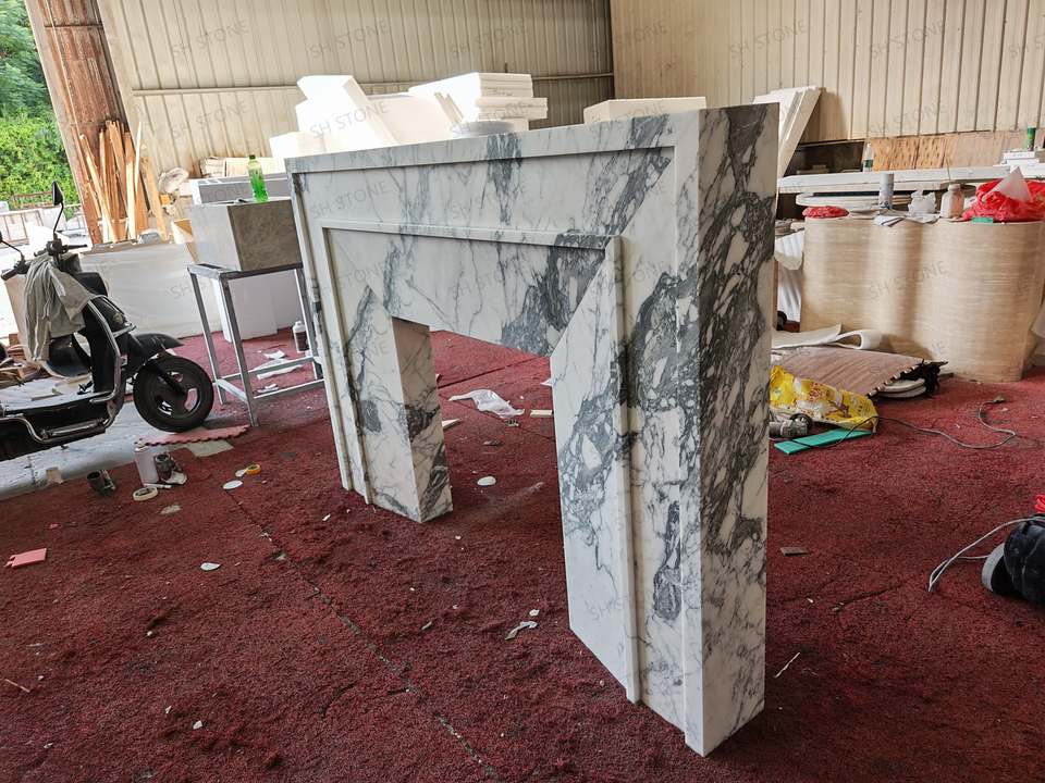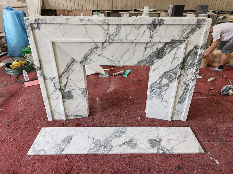SH STONE Honed Arabescato White Marble Freestanding Custom Contemporary Indoor Coal Fireplace Surround for Apartment Villa