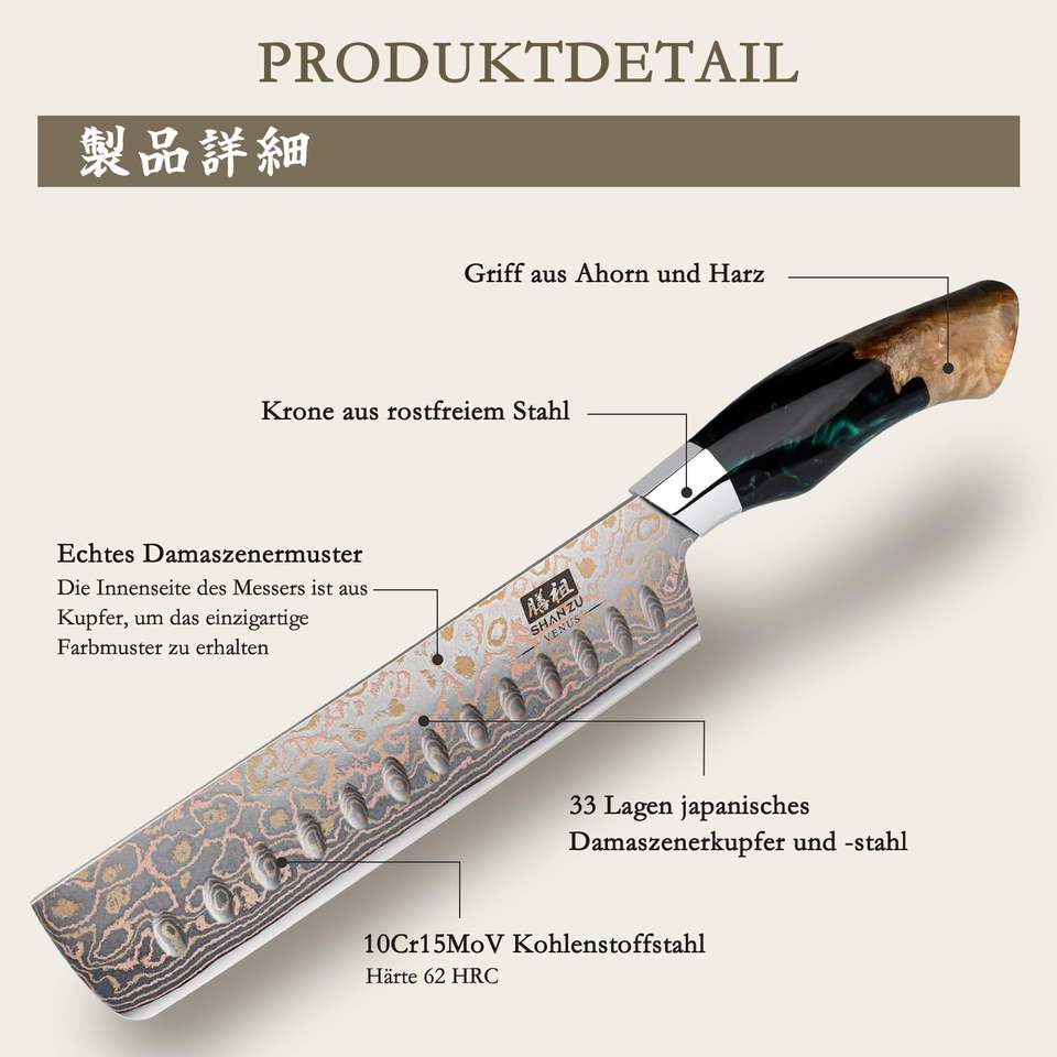 SHAN ZU Venus Series 7inch Damascus Nakiri Chef's Knife Japanese Knife Damascus Steel Professional Damask Kitchen Knife