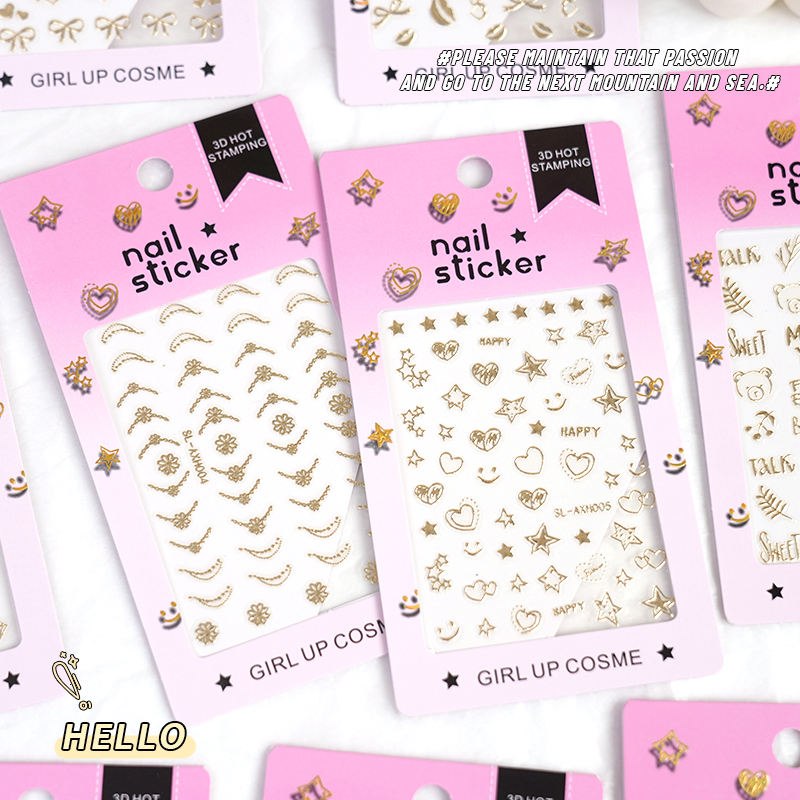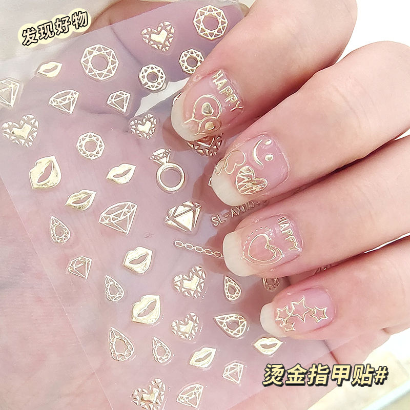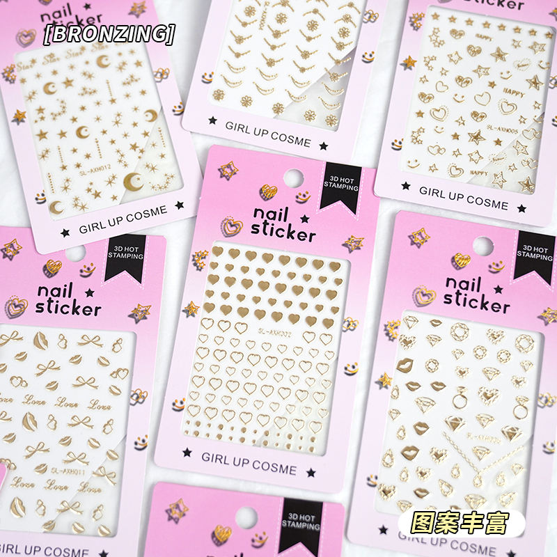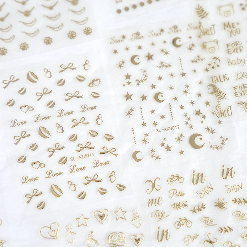 SHANLE Adesivi per Unghie 3D Mini Dorati con Stampa a Caldo, Decorazioni Regalo per Ragazze, Cosmetici alla Moda Fai da Te, Cuori, Stelle, Luna, Diamanti, Labbra, Fiocchi, Lettere