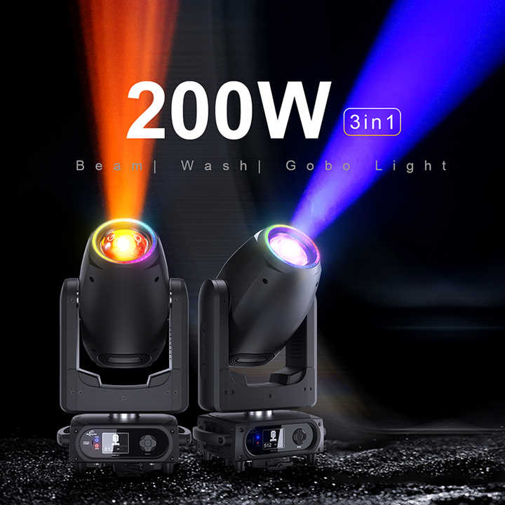 SHEHDS Cina Faro LED Mobile 3in1 200W Beam, Spot e Wash DMX 512 con Anello da 200W per Palcoscenico, Eventi, Spettacoli e Feste